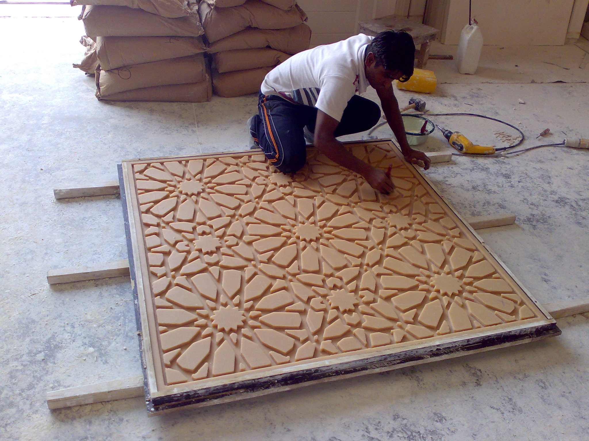 بعد تحضير العناصر (يتطلب دلك حوالي عشرون دقيقة لكل قطعة)و تجفيفها,يتم تثبيتها على هياكل.