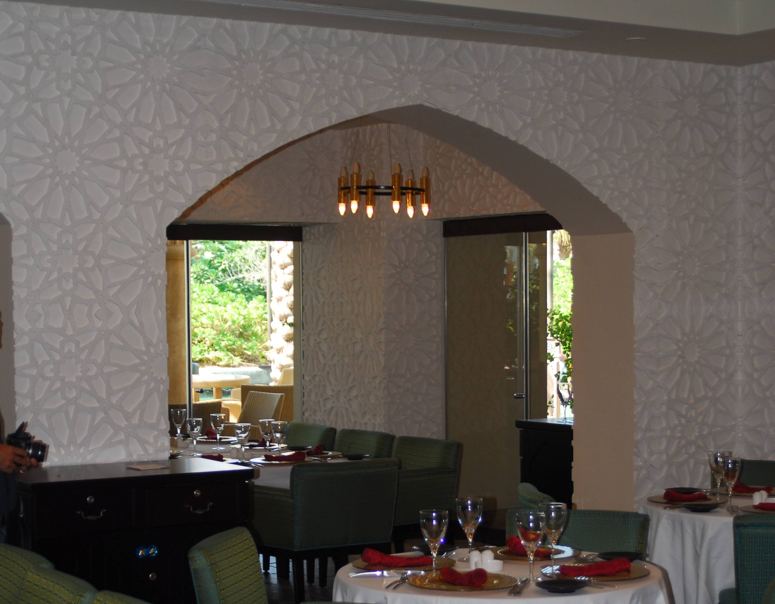 Sa décoration vient d'être complétement rénovée avec une ornementation persane réalisée en Moulex pailletté (Ice plaster).