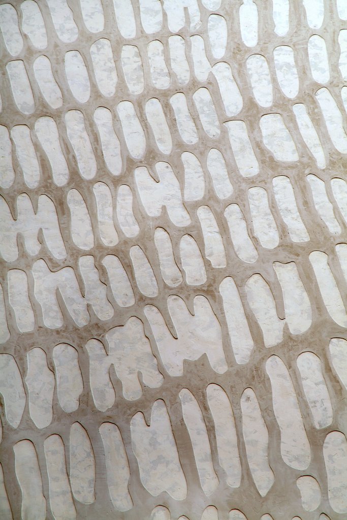 Its facade on the street side presents the largest stuc marble in the world (750 m ²/ 8000sqft), top-coated with a sgraffito whose scarifications are the translation of the painted motifs of Lena Nyadbi, indigenous Australian artist of the Kija people. This sgraffito covers the facade on approximately half of its surface and is probably also the largest in the world.