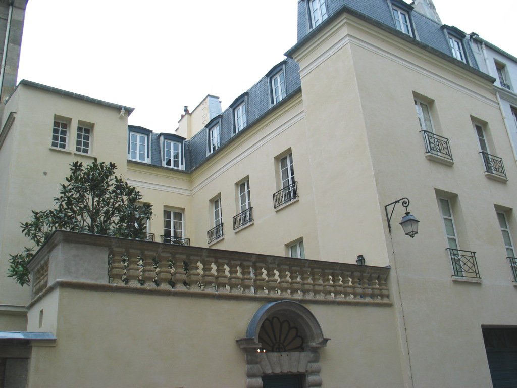 Bâtiment XVIIème en pan de bois restauré dans son enduit plâtre sans sable d'origine, coupé à la berthelet. La texture très fine et tendue obtenue est caractéristique des finitions parisiennes traditionnelles.