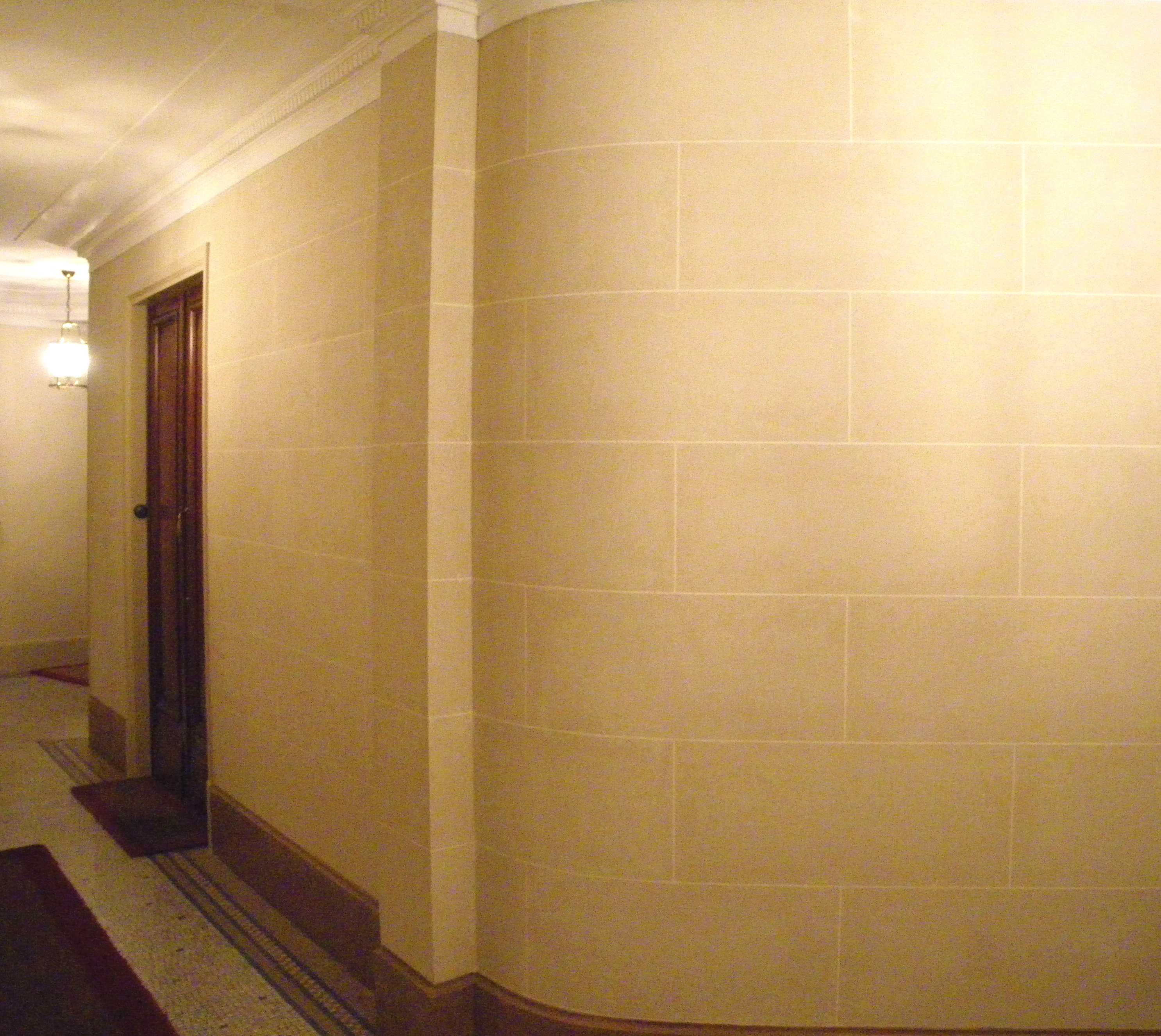 Large holes were filled with masonry filler.