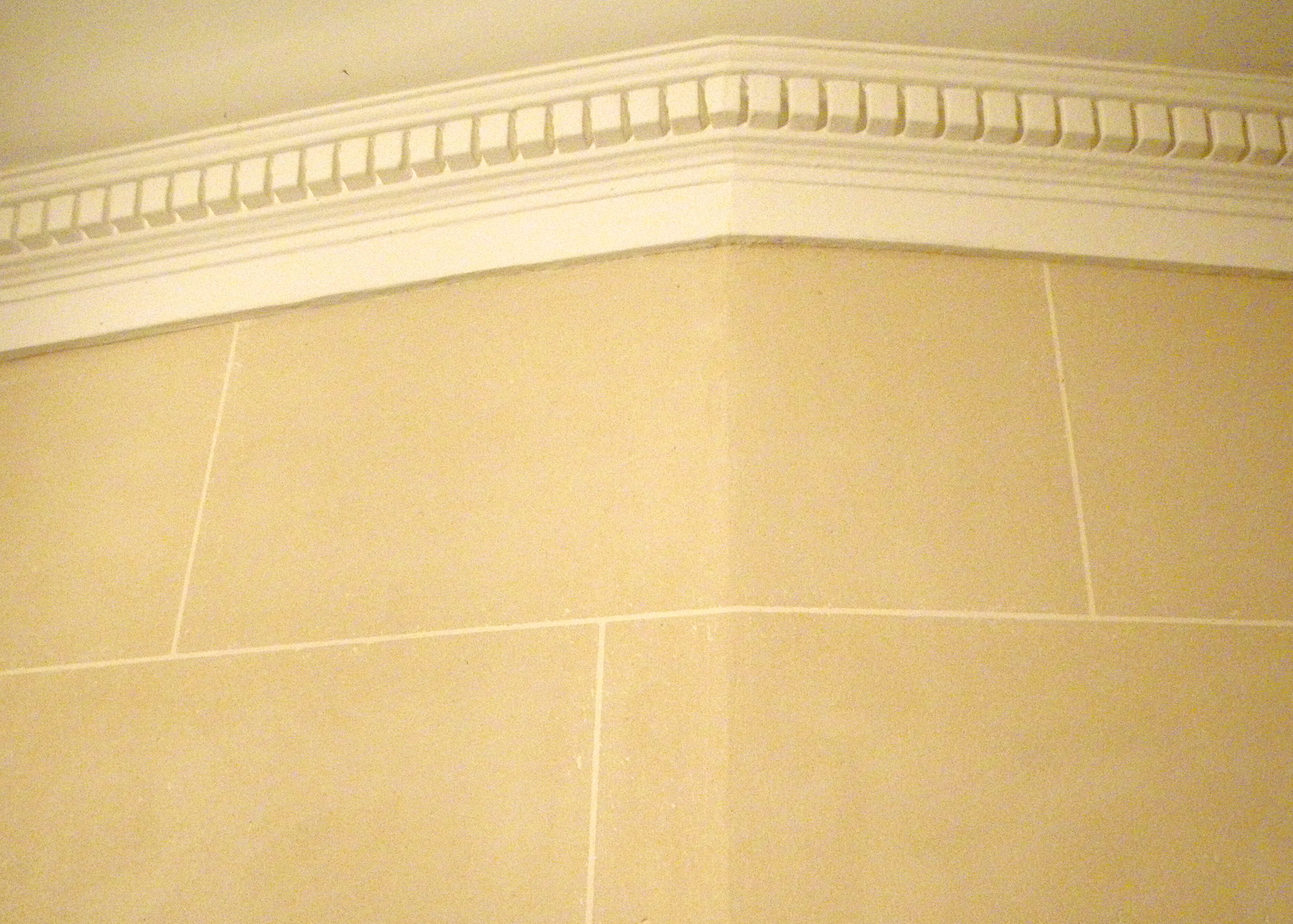 The joints were then refilled with white plaster. It was not necessary to protect the surface of Stuc Pierre or the edges of joints, as explained in the following step.